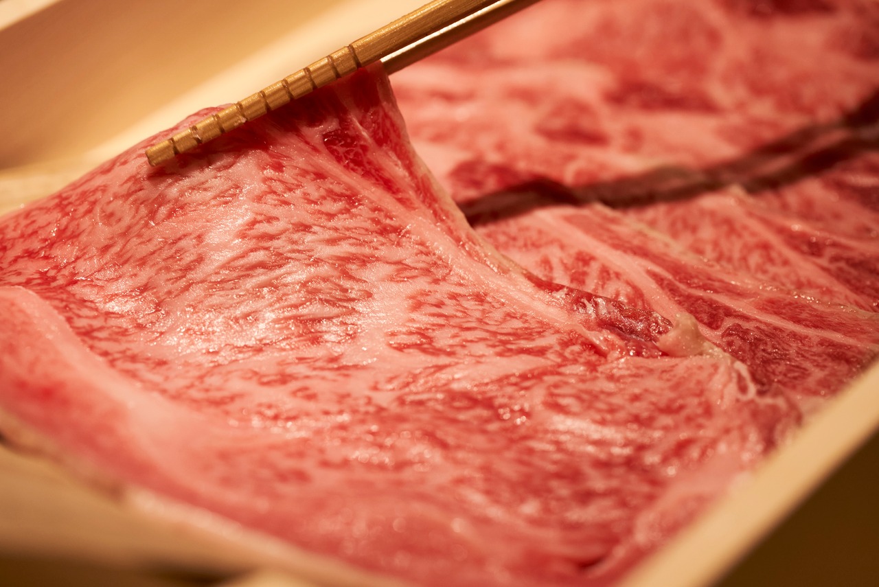 江の島にあるすき焼き専門店「ちかよ」で実際に使用している最上級の特選黒毛和牛リブロースになります。東京食肉市場で旬のお肉を買い付けており、その時期に一番の和牛銘柄をご用意しております。こちらの最上級の特選黒毛和牛リブロース厚みは2.9 ㎜。肉職人の手によって1 枚1 枚丁寧にフィルム梱包しています。